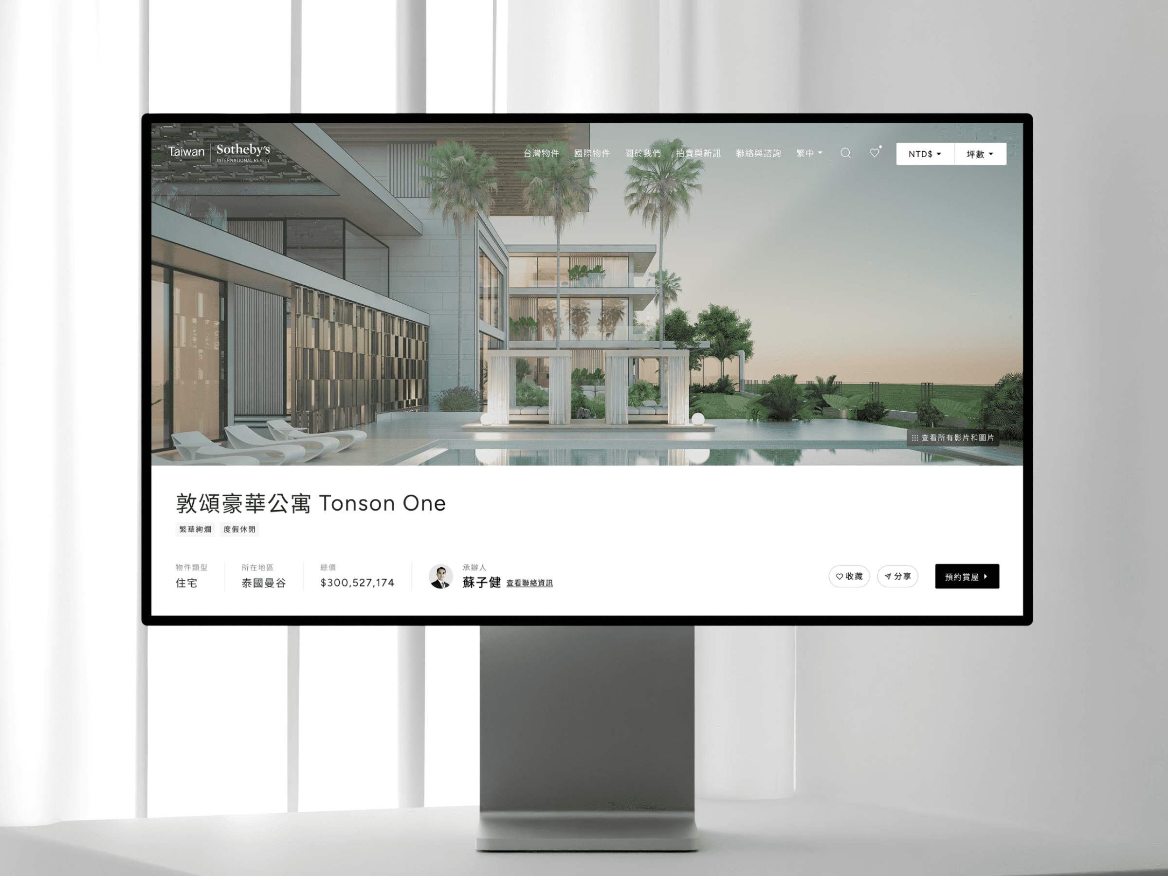 Founded in 1976, Sotheby’s International Realty now spans approximately 84 countries, with a team of top global real estate advisors dedicated to curating the finest luxury residences. This redesign of the Taiwan Sotheby’s International Realty website centers on creating a premium, personalized online experience—allowing users to effortlessly explore listings that reflect their lifestyle and aesthetic, and fulfill their vision of home.Our design strategy redefines property categorization. In addition to location-based filters, we’ve introduced diverse lifestyle themes and tags to help users discover homes that align with their ideal way of living. Enhanced visual presentation offers an immersive experience, bringing the space to life through detail and atmosphere. Personalized recommendations, social sharing, and editing features further elevate engagement and exclusivity.Visually, the site reflects the brand’s signature sophistication—using minimalist, neutral typography and color palettes to keep the focus on refined property imagery and convey Sotheby’s sleek, elegant identity.